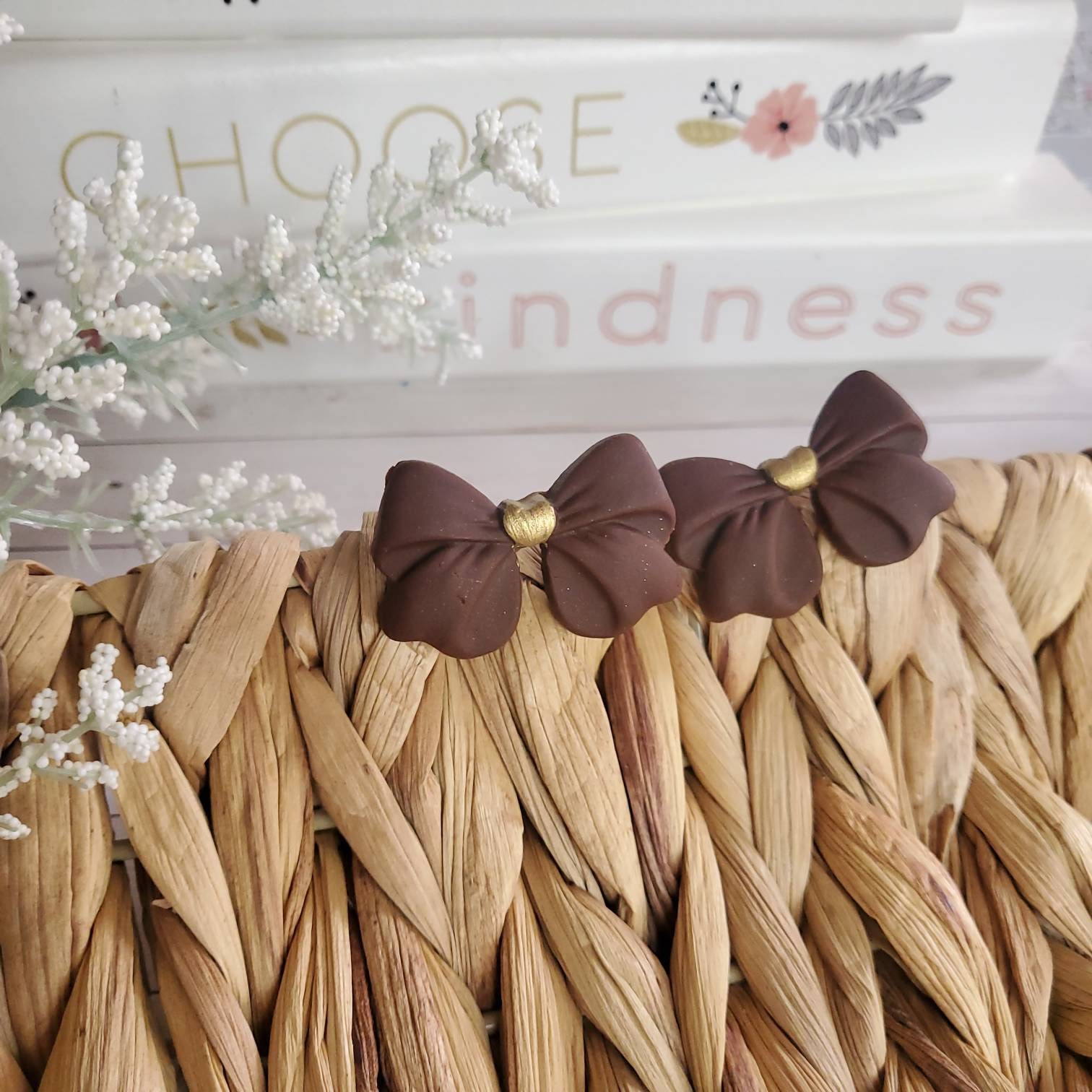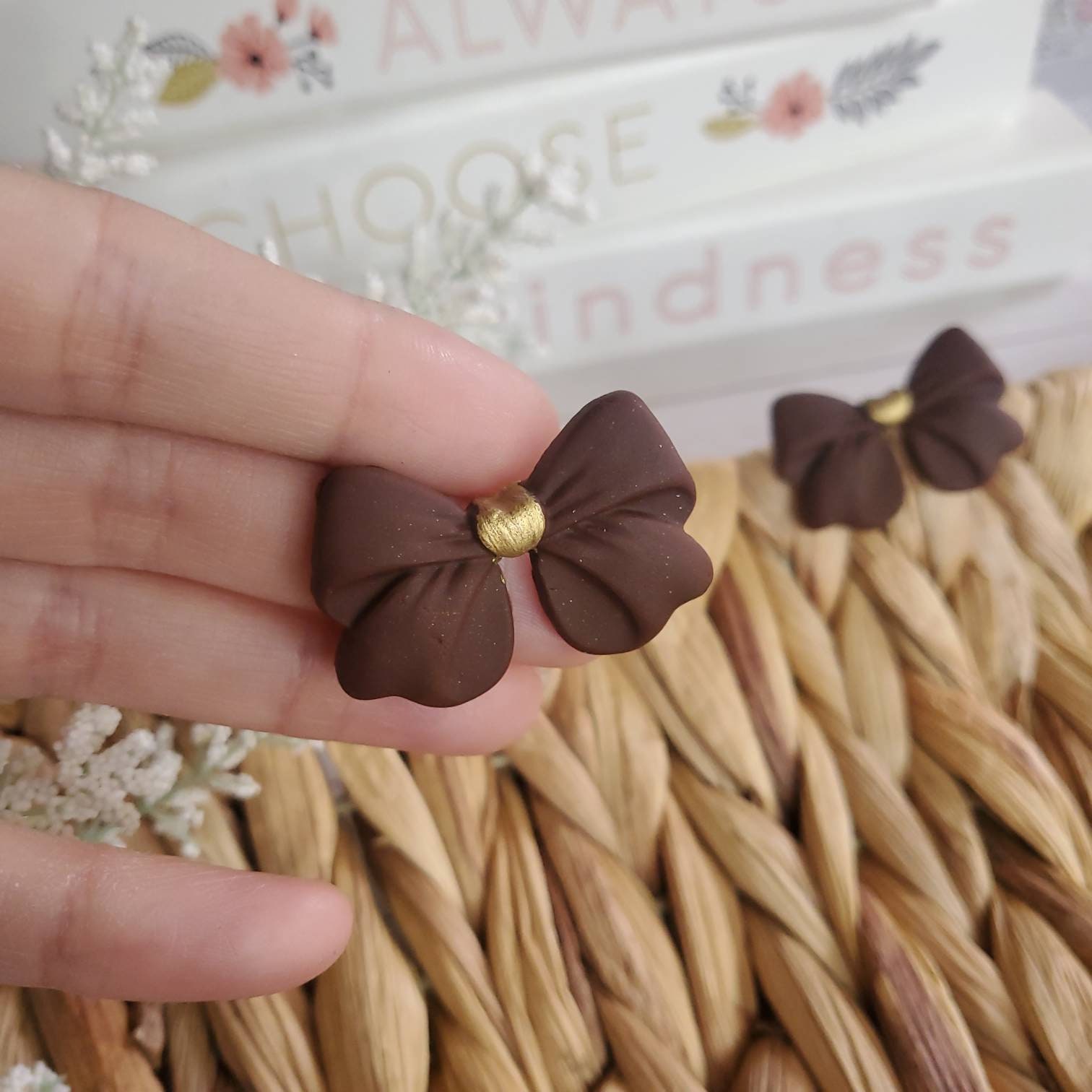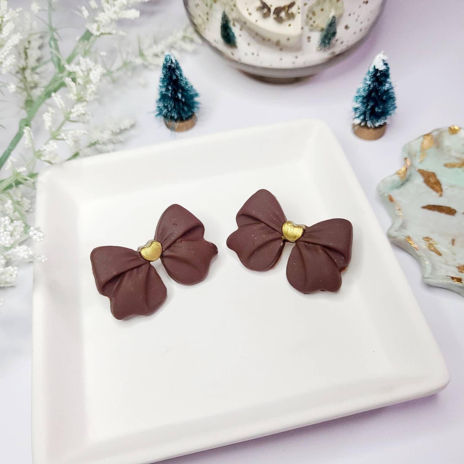 - This Brown bow Christmas stud earrings is handmade only for you.