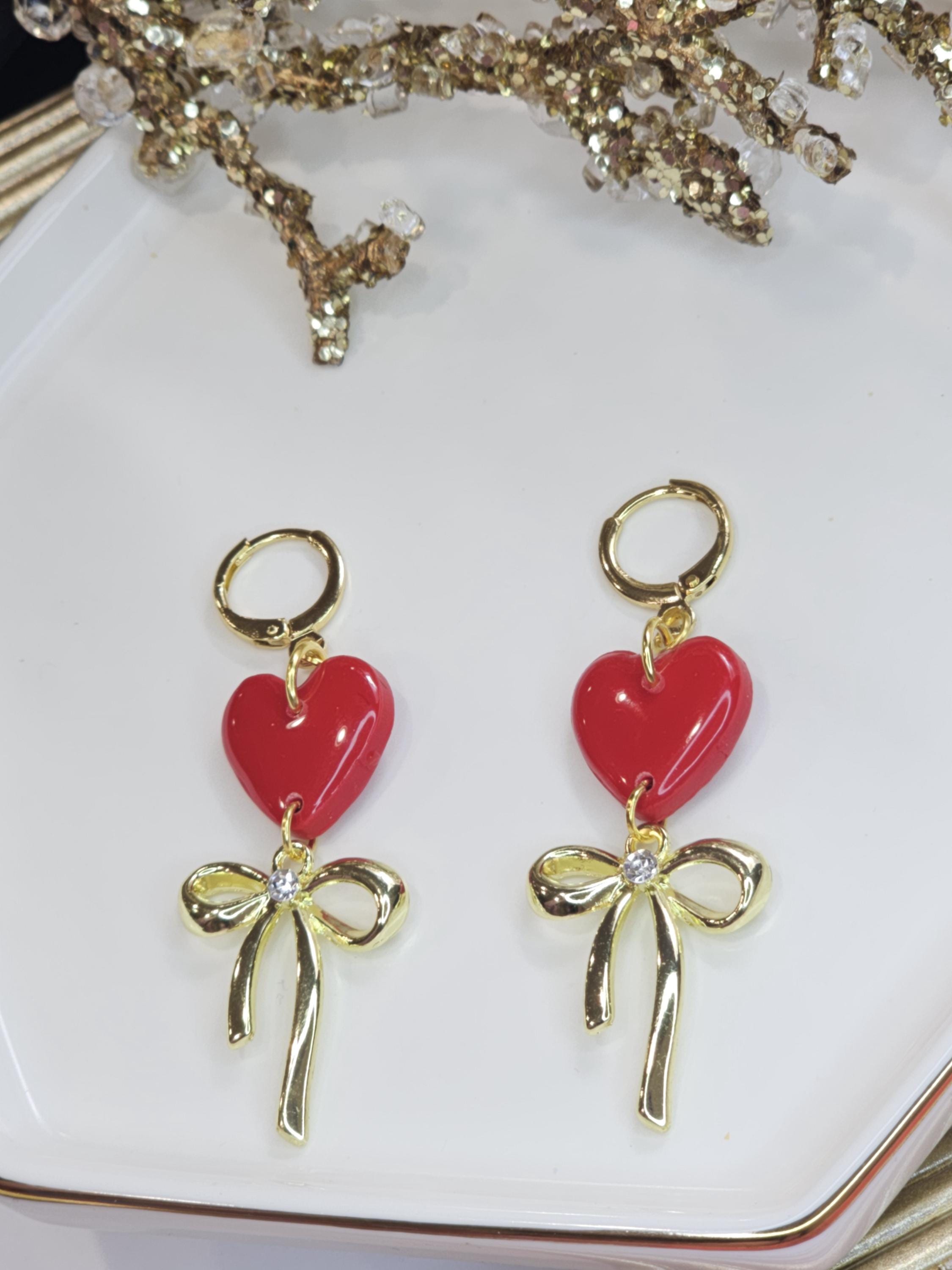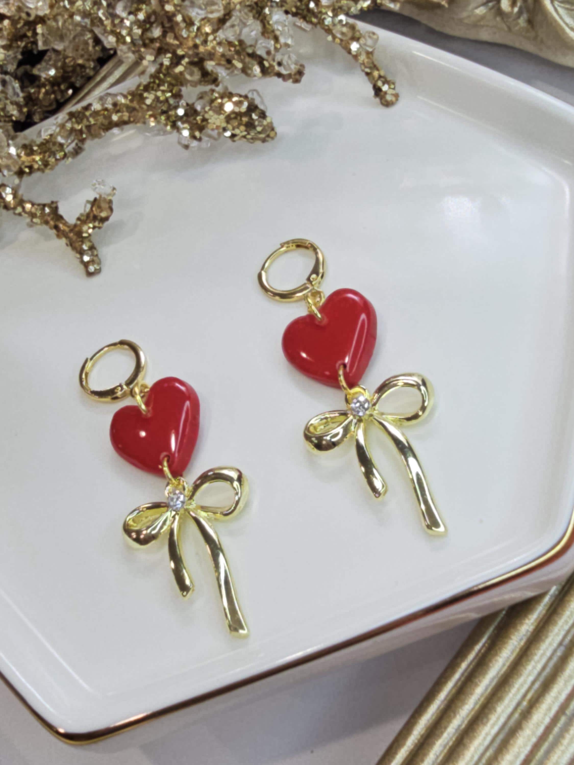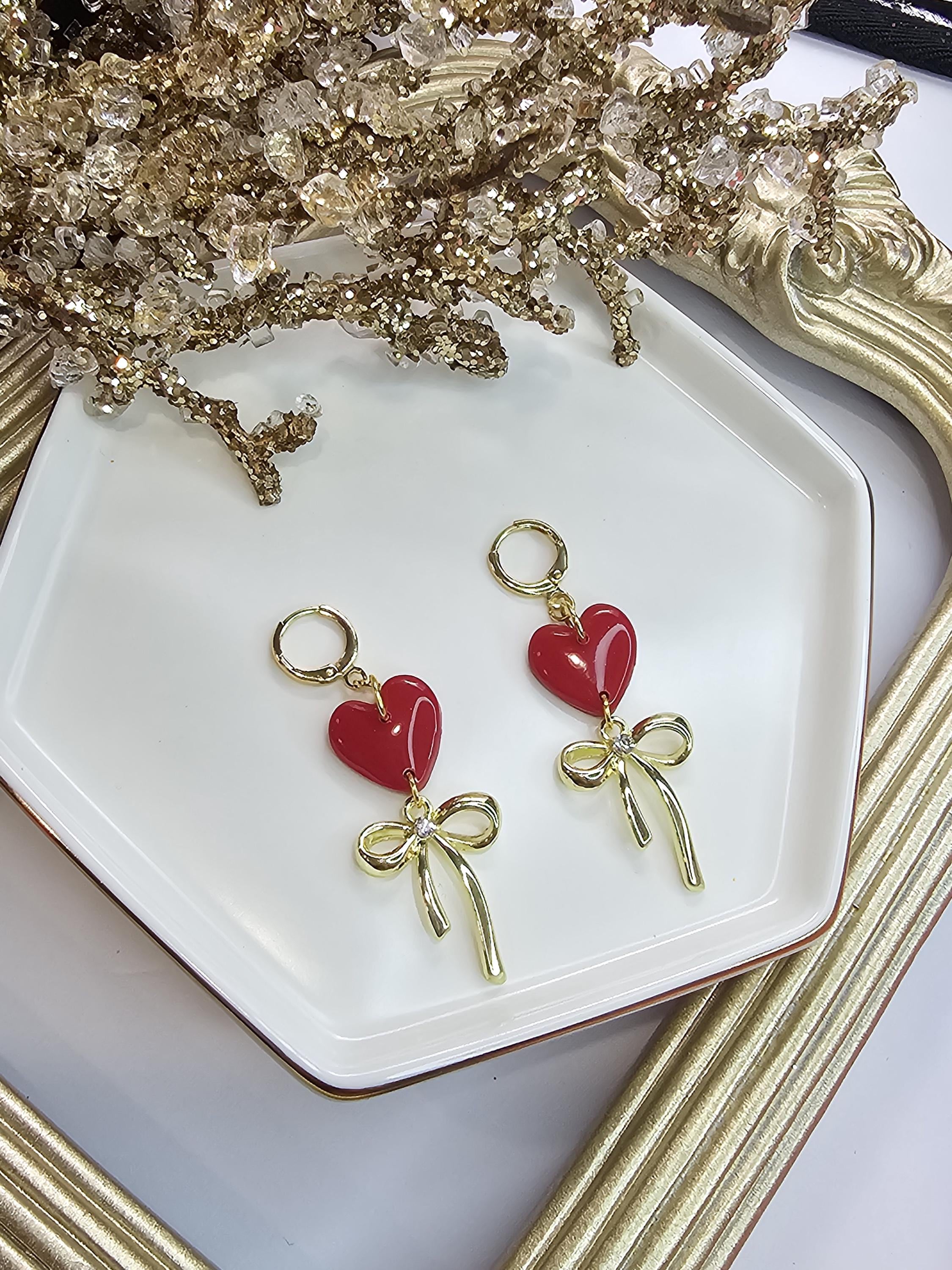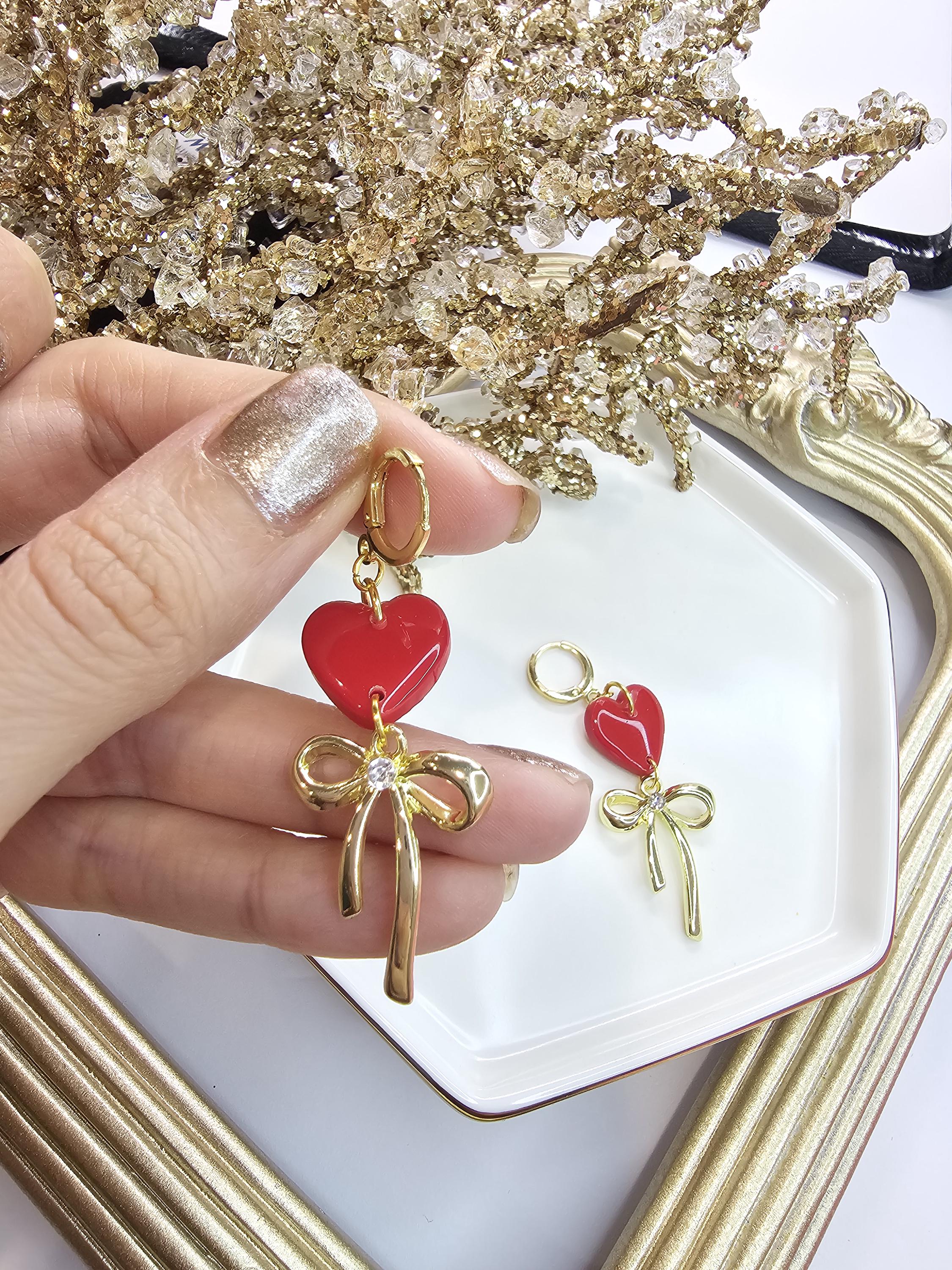Chic Design: A glossy Red heart paired with a delicate gold bow charm for a timeless and graceful look.