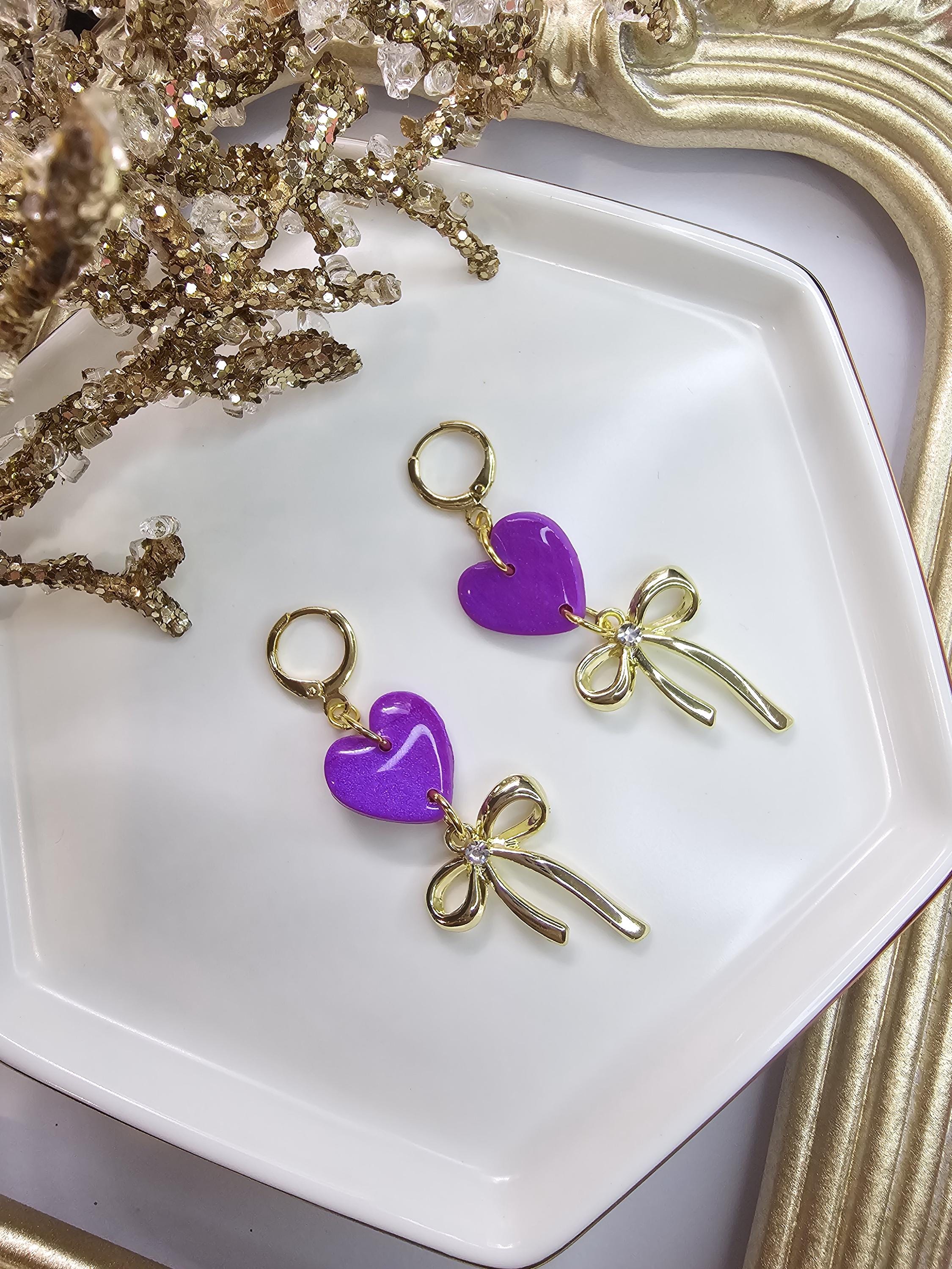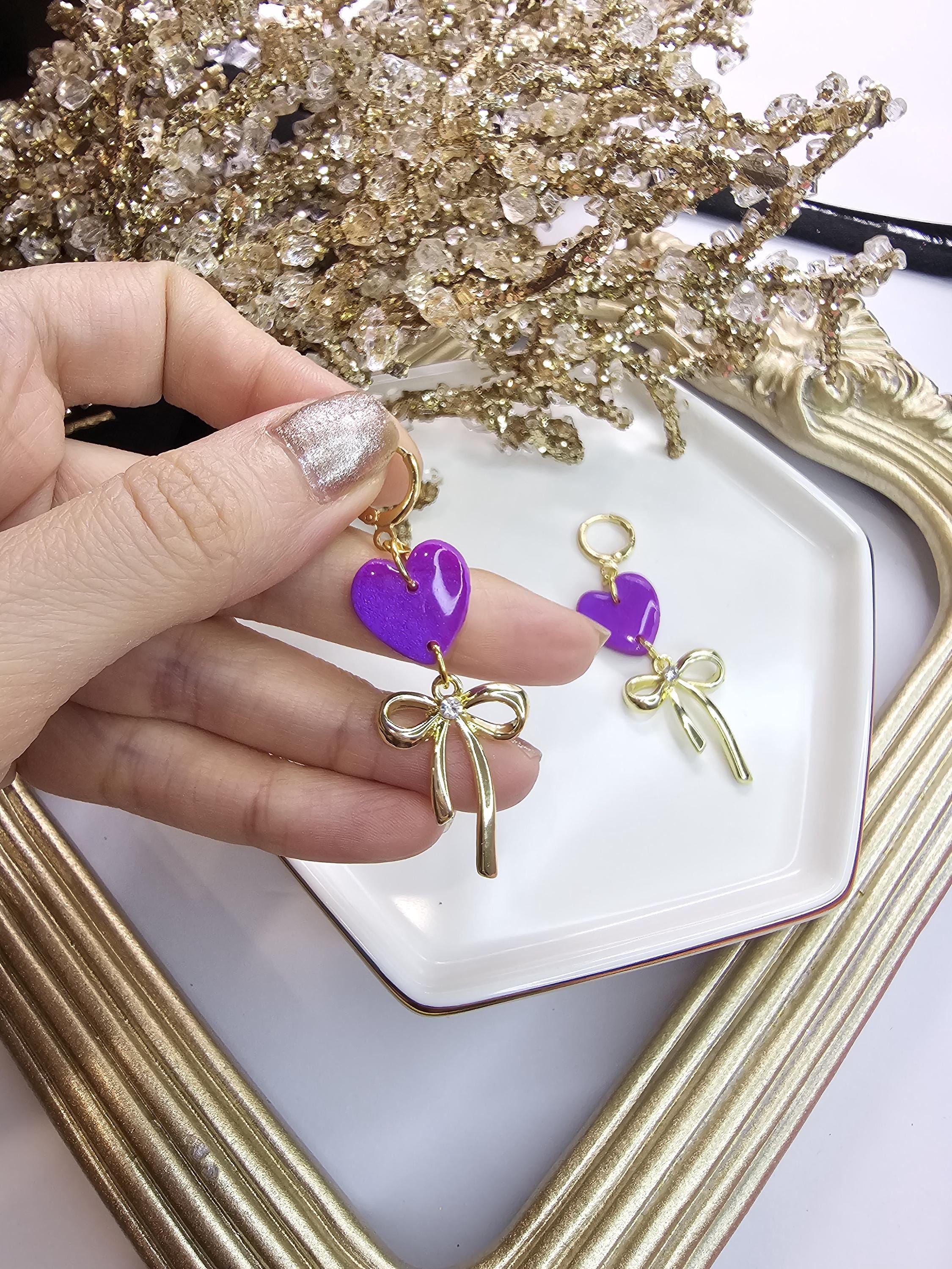 Chic Design: A glossy purple heart paired with a delicate gold bow charm for a timeless and graceful look.