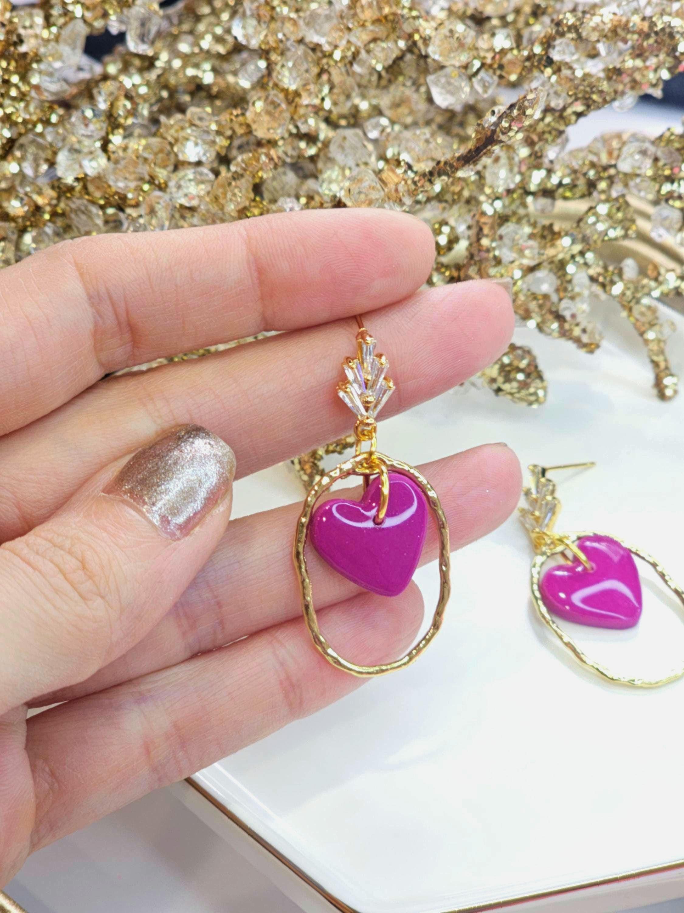 Colors: Burgundy pink hearts, gold-plated hoop, and crystal-clear cubic zirconia