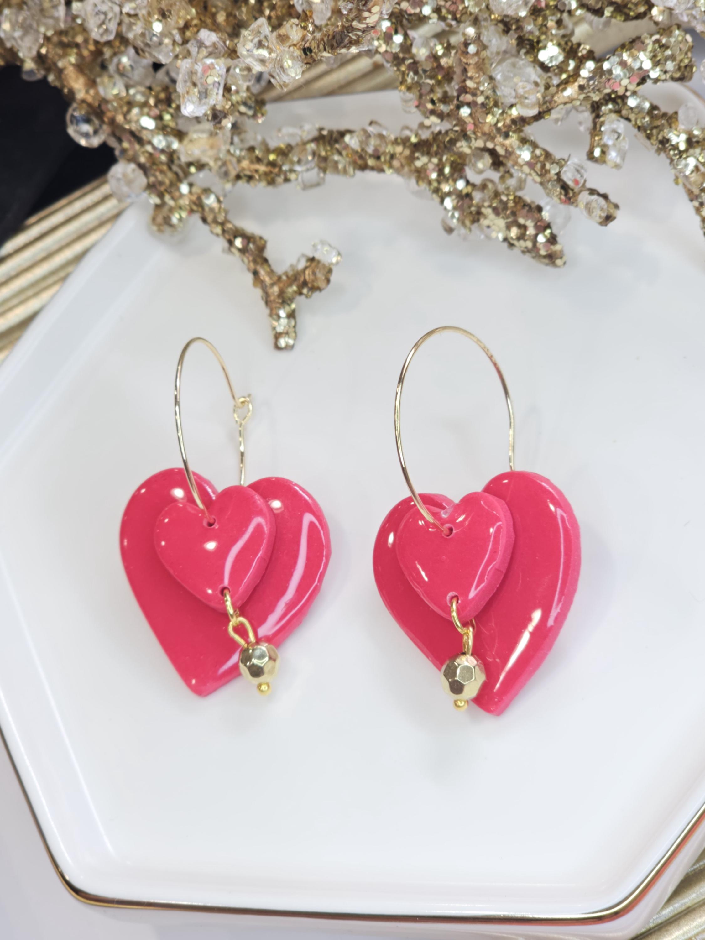 The additional gold-plated charm adds a touch of elegance, while the layered hearts provide a fun and versatile design. Handcrafted with care, these earrings are a wonderful gift or a special treat for yourself.