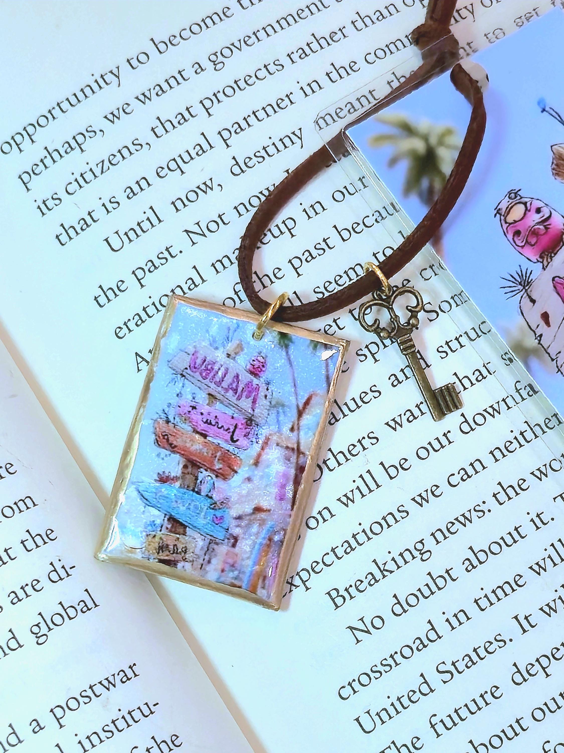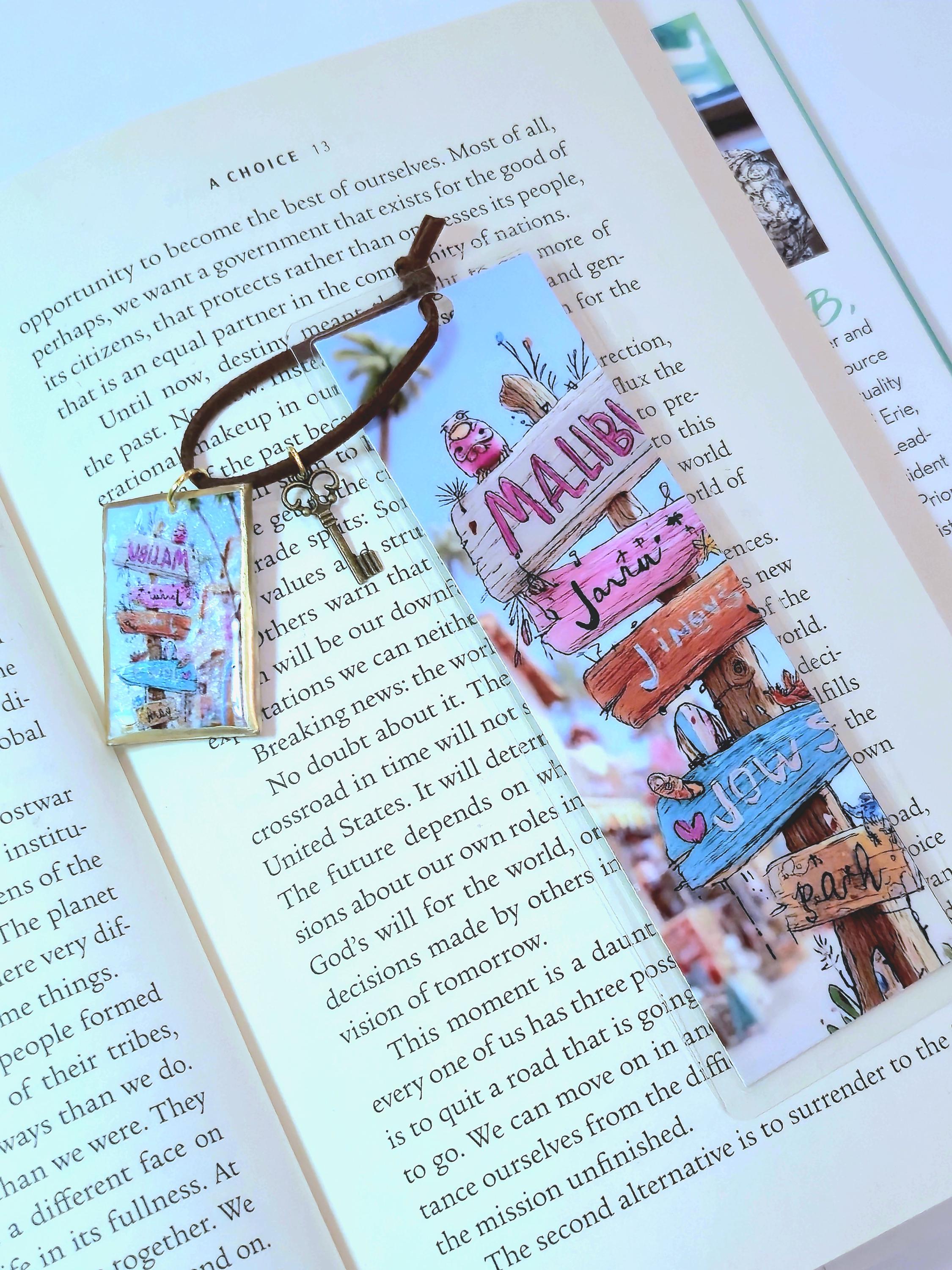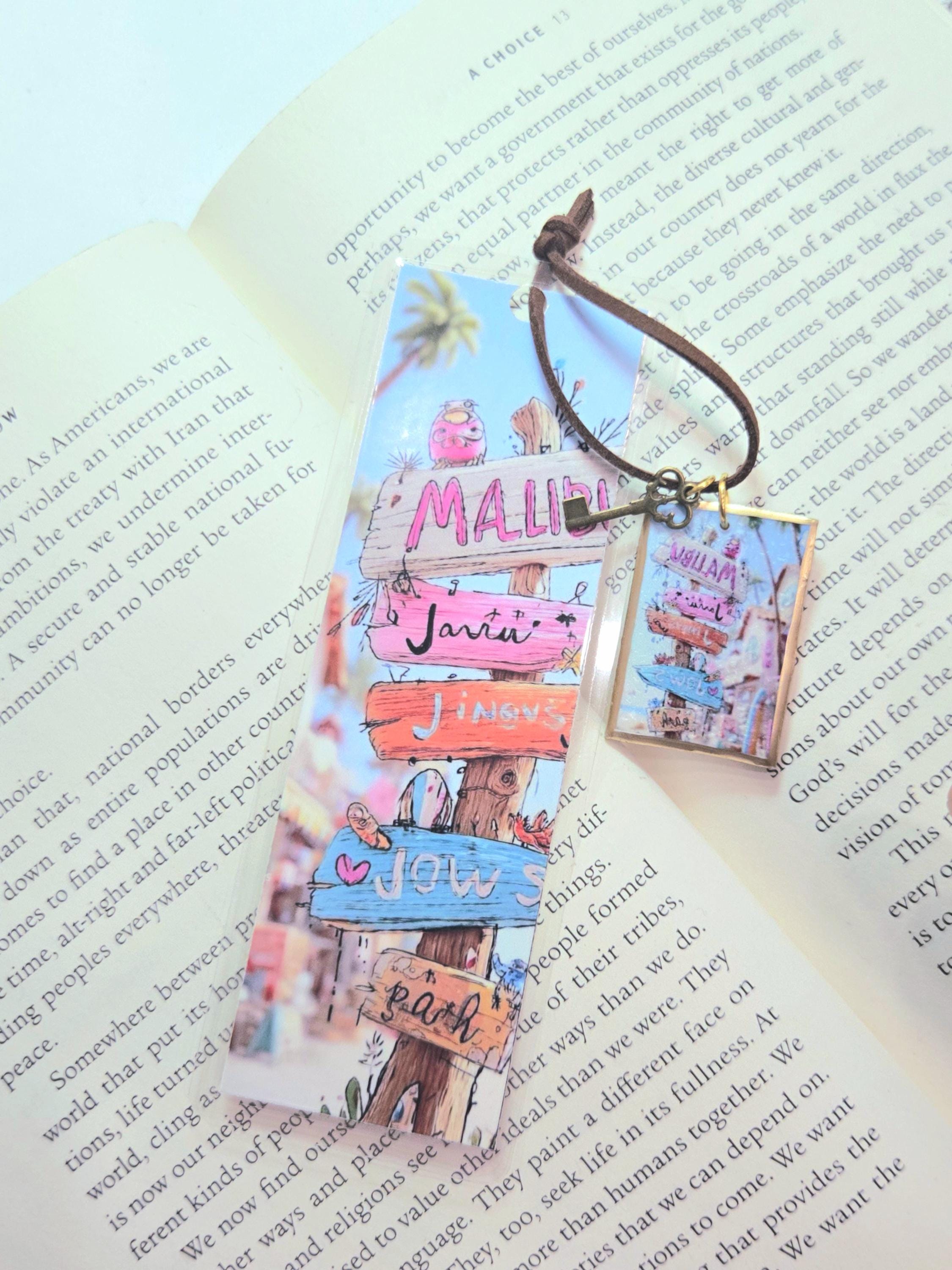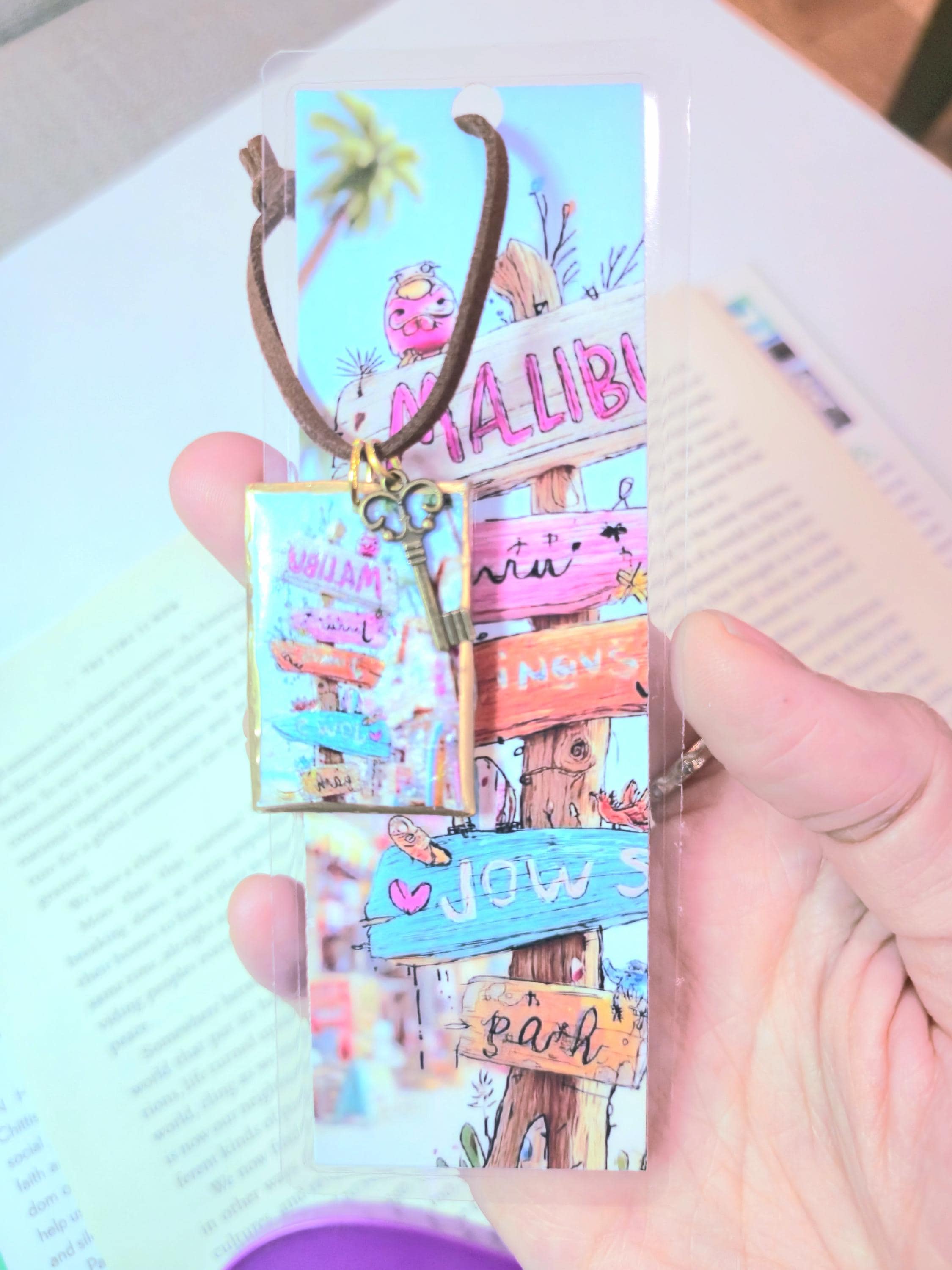 This handmade bookmark is filled with joy and movement—colorful signposts pointing toward places and feelings we all love: Malibu, Paris, Love, Joy. It feels like a gentle reminder that life, like reading, is a journey meant to be enjoyed.