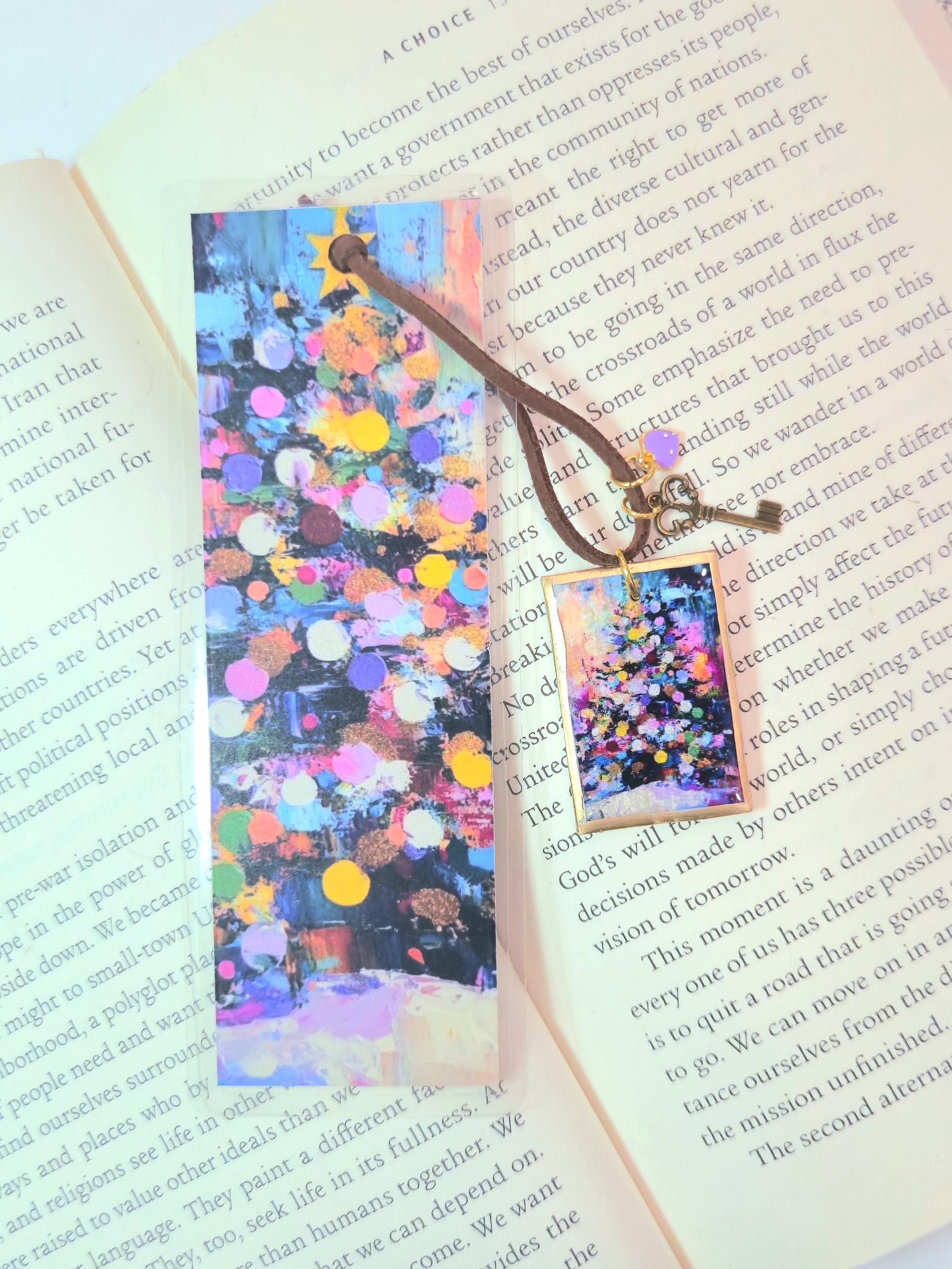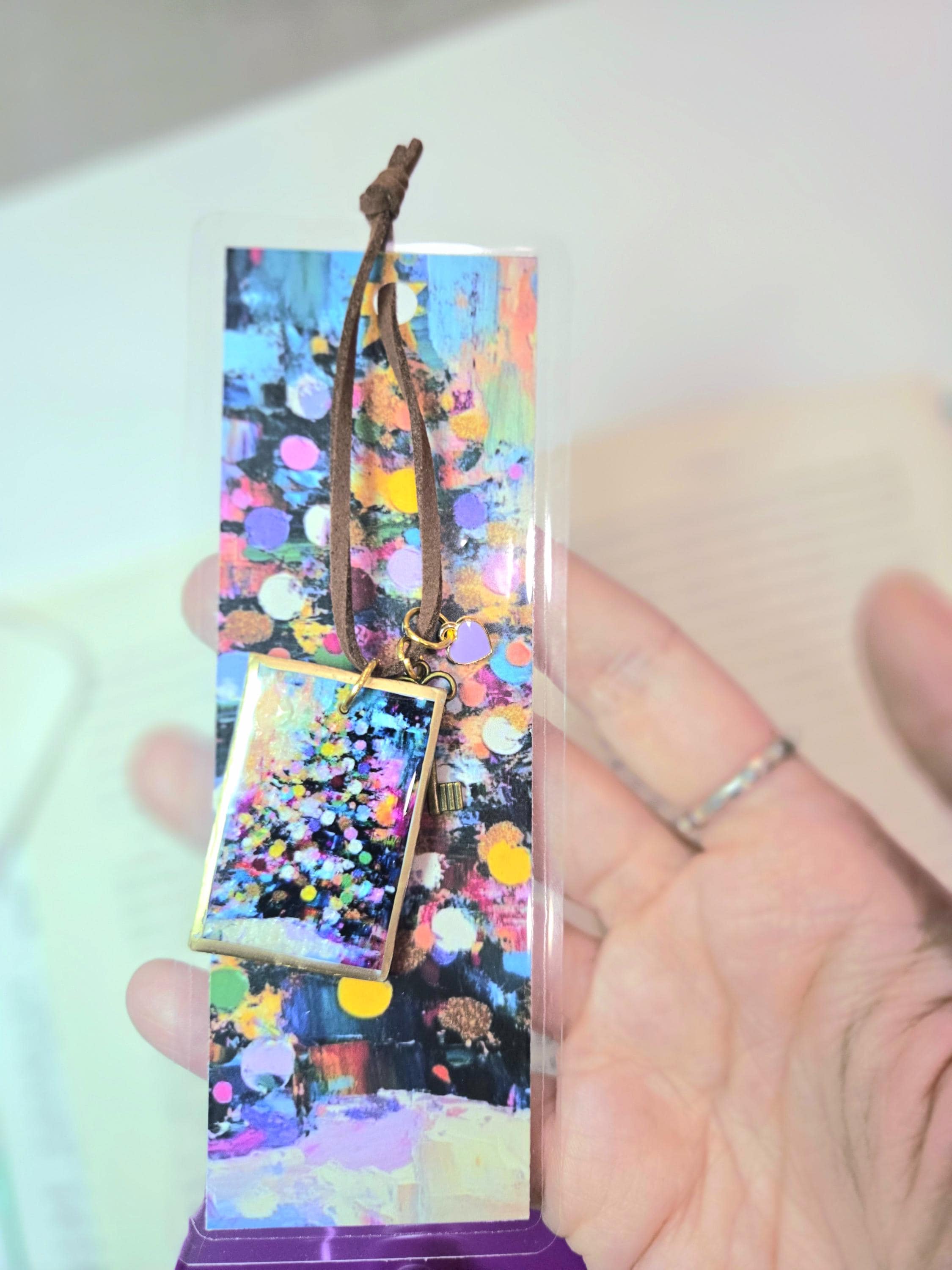 Finished with a handmade clay charm created using a decal transfer technique, this bookmark adds a small artistic accent without weighing down your pages. The laminated surface protects the artwork, while the faux leather cord makes it easy to mark your place and adds a cozy handmade feel.